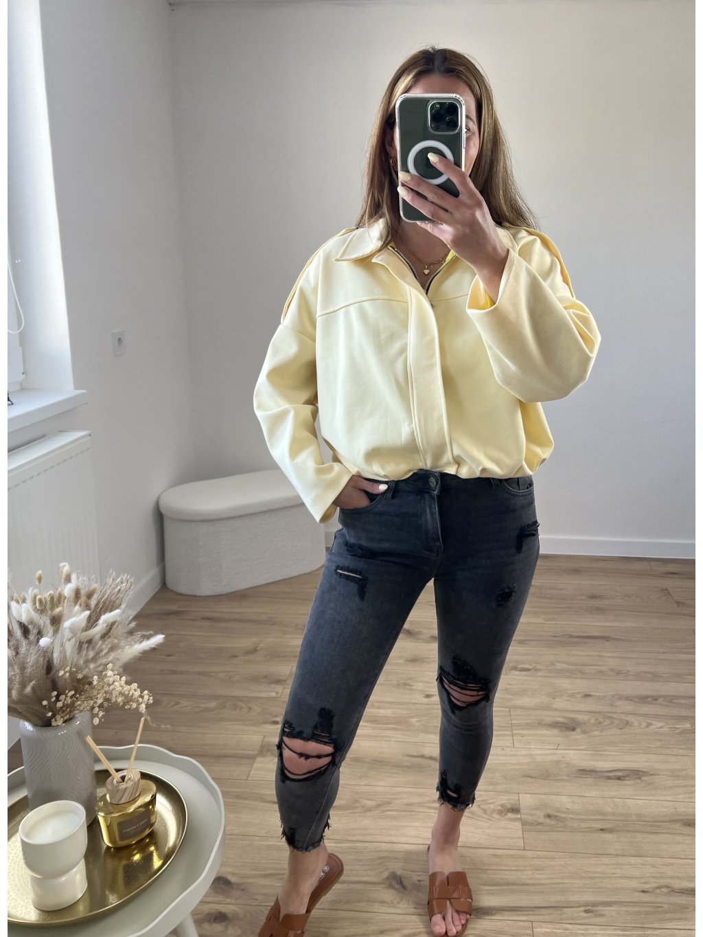 Bunda má šírku 49x2cm, na spodnej časti je guma ktorá ma šírku 40x2-48x2cm. Dĺžka bundy je 54cm